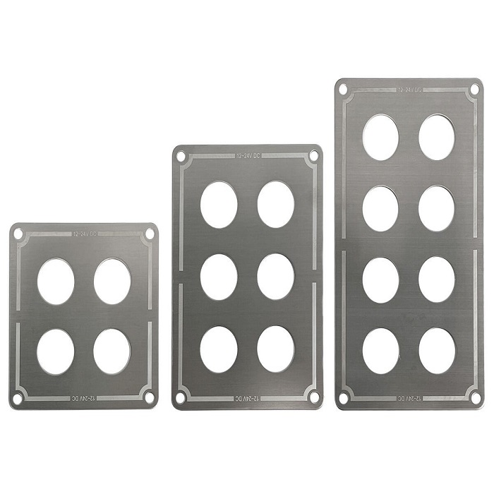 These sleek stainless steel switch panel faceplates come without switches, allowing you to customise and build your own panels.